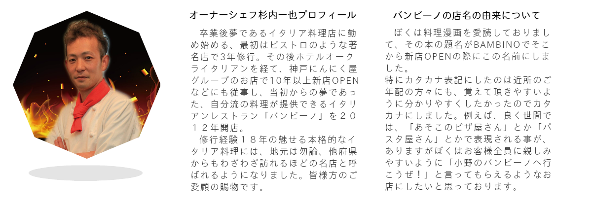 小野市にある本格的イタリアンレストラン、バンビーノへお越しになってください。